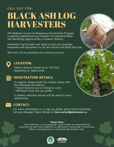 The MCA Environment Program is seeking experienced Log Pounders for potential Black Ash harvesting opportunities in Eastern Ontario.