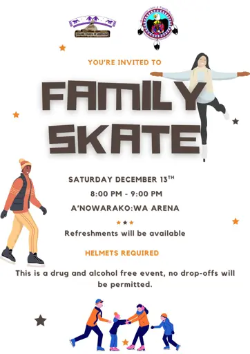 Akwesasne Child & Family Services invites families to lace up their skates and enjoy a fun-filled evening on the ice! Join us Saturday, December 13 from 8:00–9:00 p.m. at the A’nowara’ko:wa Arena for a community skate that’s perfect for all ages.
