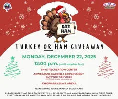 Akwesasne Child & Family Services (ACFS) is excited to spread holiday cheer with a free turkey or ham giveaway for community members!