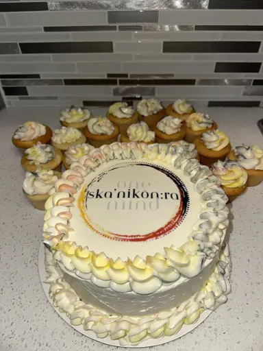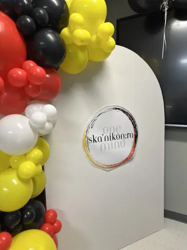 The name Skaʼnikòn:ra, meaning "One Mind," was chosen through a staff-wide vote after being suggested by Karen Jocko and reflects the collective effort behind this project. The logo, designed by Courtney Skidders, represents the medicine wheel and the balance of working together in harmony to support families.