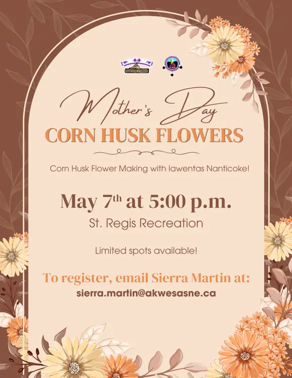 Akwesasne Child & Family Services, in partnership with Iawentas Nanticoke, invites community members to take part in an afternoon of corn husk flower making during the ACFS Mother’s Day Event!