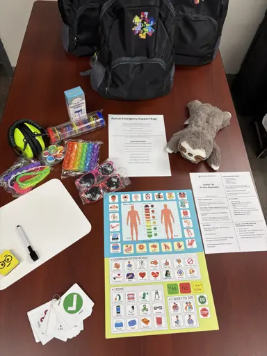 The Akwesasne Mohawk Ambulance (AMA) personnel recently completed in-service training for their recently acquired Autism Spectrum Disorder (ASD) emergency kits. The kits consist of support bags containing tools designed to help Autistic individuals manage sensory overload, reduce anxiety, and safely navigate emergency situations.