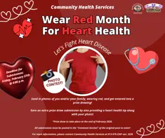 To join the Wear Red Month for Heart Health campaign, community members can submit photos of themselves (or their families) wearing red to be entered into a prize drawing at the end of February. You can earn an extra entry by including a heart health tip along with your photo. 📷