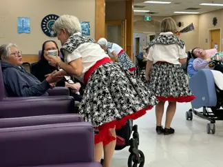 Tsiionkwanonhso:te Long-Term Care Facility was thrilled to welcome back the Cornwall City Cloggers, who danced their way into our totas’ hearts with an unforgettable performance! It’s been years since their last visit, and what a toe-tapping treat it was! The staff at Tsiionkwanonhso:te invited the residents of Iakhihsohtha to join in on the clogging fun!