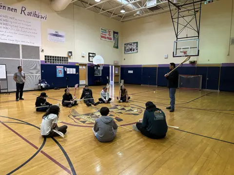 During the week of February 17–20, 2026, Mike Benedict, Youth Worker with the Akwesasne Community Justice Program, and Jessica Shenandoah, Camp Coordinator with Thompson Island Cultural Camp, hosted a youth camp for 15 youth ages 13–17 called “The Roots of Lacrosse.”