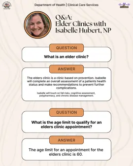 YOUR QUESTIONS ANSWERED: ELDERS CLINICS WITH ISABELLE HUBERT, NP