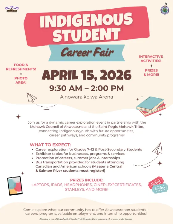 In partnership with the Mohawk Council of Akwesasne and the Saint Regis Mohawk Tribe, this exciting event brings Indigenous youth face-to-face with careers, programs, and local employers.