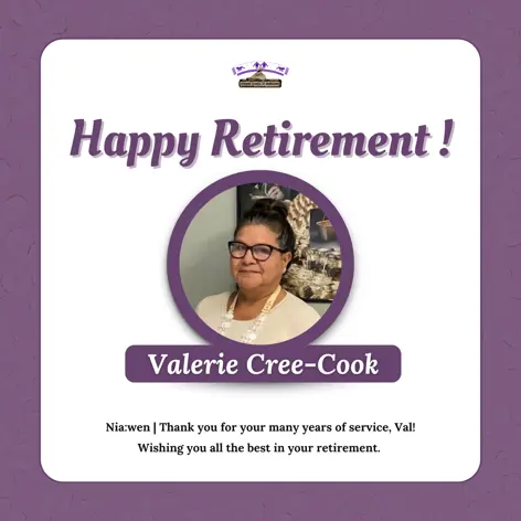 The Mohawk Council of Akwesasne (MCA) would like to recognize and celebrate the retirement of Valerie (Val) Cree-Cook, who will be concluding her time with the Department of Community and Social Services as Associate Director on April 24, 2026.