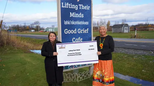 On November 6, 2025, the Mohawk Council of Akwesasne (MCA), through the Healing and Wellness Committee, proudly presented a cheque in the amount of $24,538 to Diane Boots of Iahki’nikonhketskwas (Lifting Their Minds), in recognition of their compassionate work supporting families and community members through end-of-life planning and care. The Healing and Wellness Committee, made up of MCA Chiefs, was formed to distribute funds dedicated specifically to healing and wellness efforts within the community, following a call-out for applicants earlier this spring.