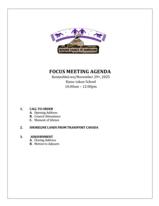 The Mohawk Council of Akwesasne invites community members to attend a Focus Meeting on Saturday, November 29, 2025, from 10:00 a.m. to 12:00 p.m. at Kana:takon School. This meeting will provide updates and an opportunity for the community to discuss important topics, including the possibility of purchasing shoreline lands from Transport Canada.