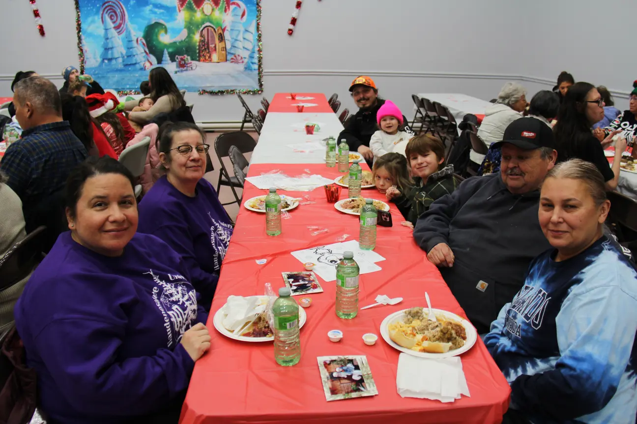 The Mohawk Council of Akwesasne welcomed community members to the first of three Community Holiday Dinners on Monday, December 8, at St. Regis Recreation Center. Guests enjoyed a delicious feast provided by TLC Catering, shared smiles, and snapped photos with Santa! π