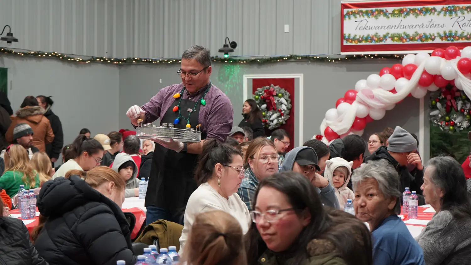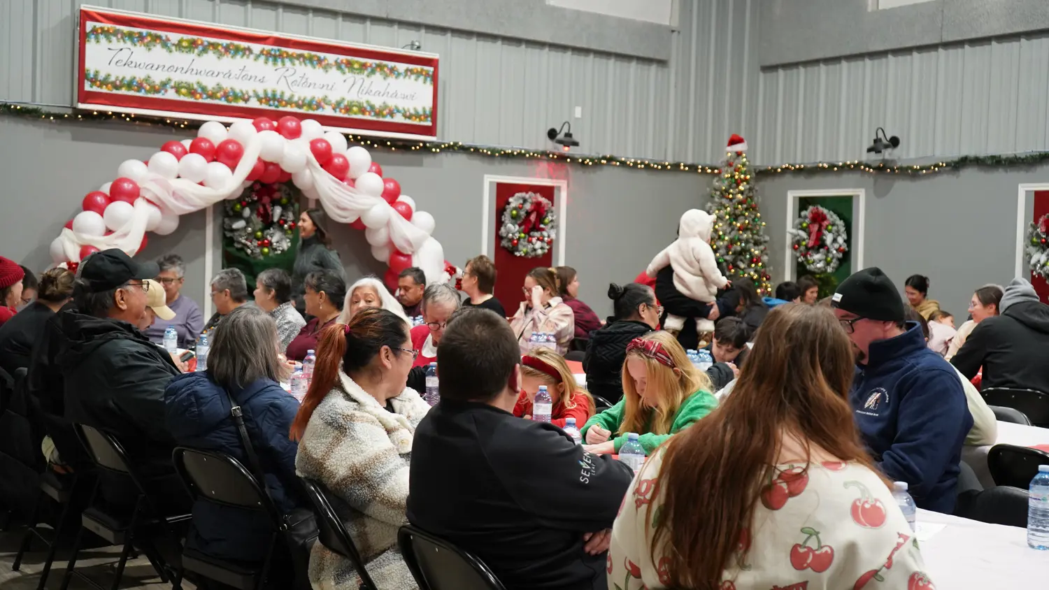 The Mohawk Council of Akwesasne wrapped up this year’s Community Holiday Dinner series on Monday, December 15 at the Kawehno:ke Recreation Center. Community members gathered to enjoy an evening of good company, festive cheer, and a delicious meal prepared by Island Girlz Catering. Santa Claus visited for photos and greetings with families, making Kawehno:ke his final holiday stop before heading back to the North Pole to prepare for Christmas. 🎅
