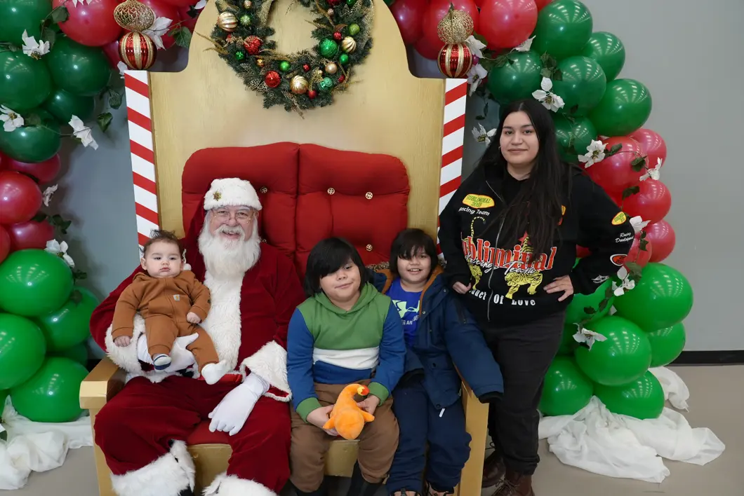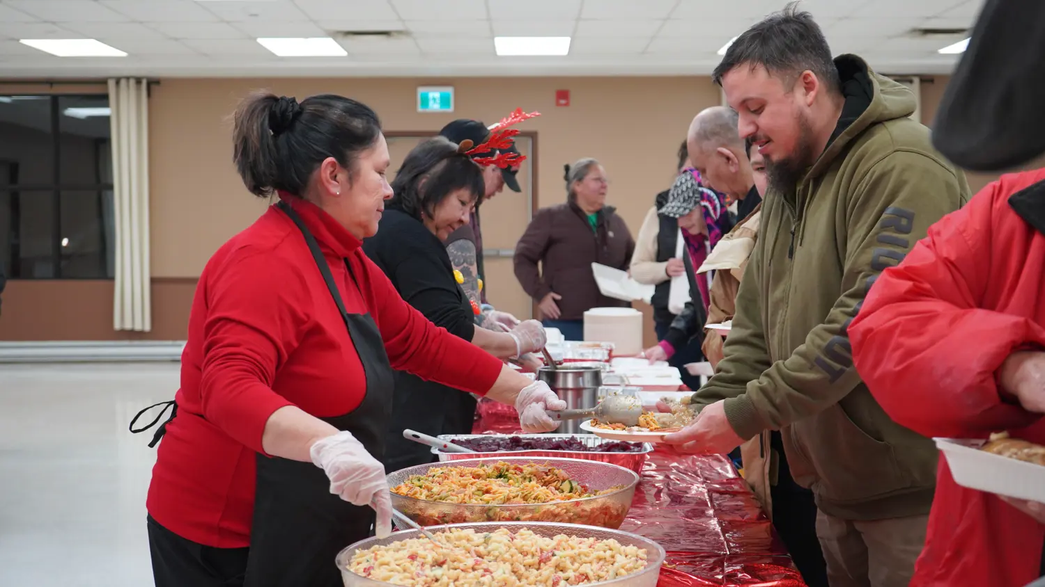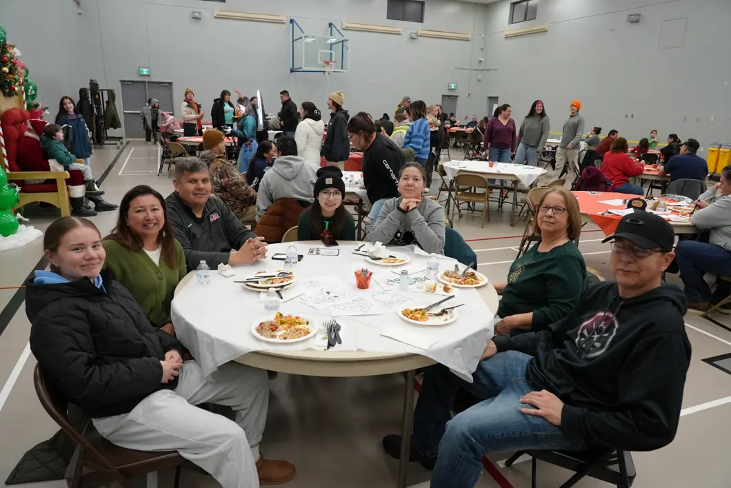 Akwesasro:non bundled up and braved the snowy “winter wonderland” on Wednesday, December 10, joining the Mohawk Council of Akwesasne at the Snye Recreation Center for the second Community Holiday Dinner of the season. Despite the weather, the warmth of good company, community connection, and a delicious meal catered by Three Feathers filled the space. Santa also made his rounds, stopping for visits and photos with families. 🎅