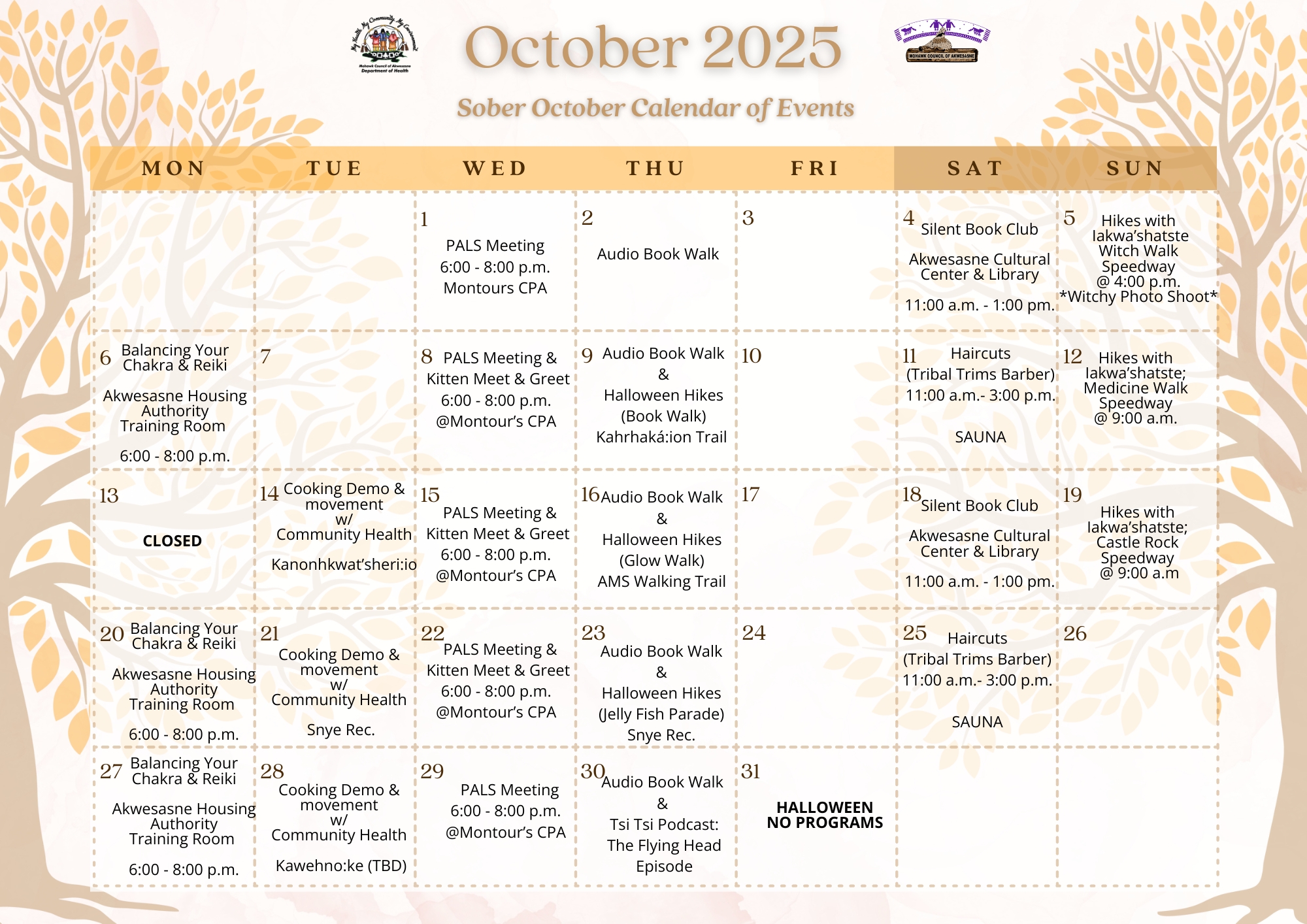 The Mental Health and Wellness Sober October series of events consists of numerous options for safe and sober activities. Please refer to the Sober October calendar to see dates, times, and locations of the events being hosted this month.