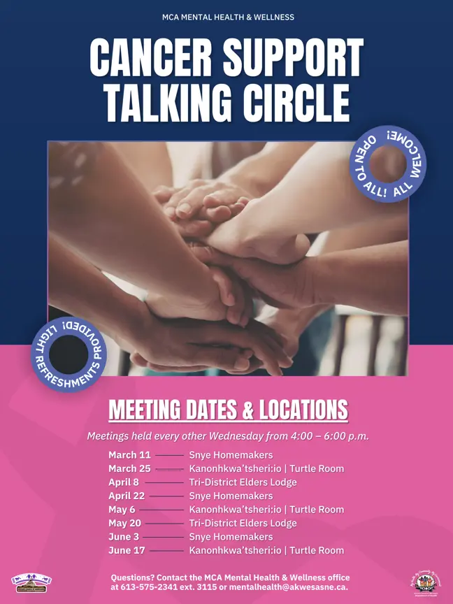 The Mohawk Council of Akwesasne's Mental Health & Wellness team is proud to introduce a new community initiative: Cancer Support Talking Circle.