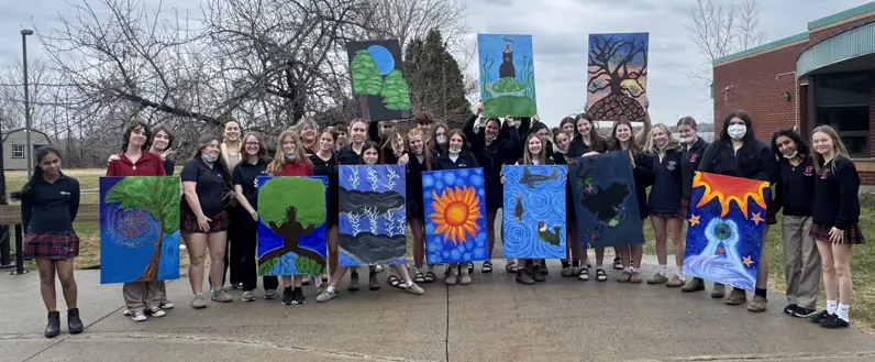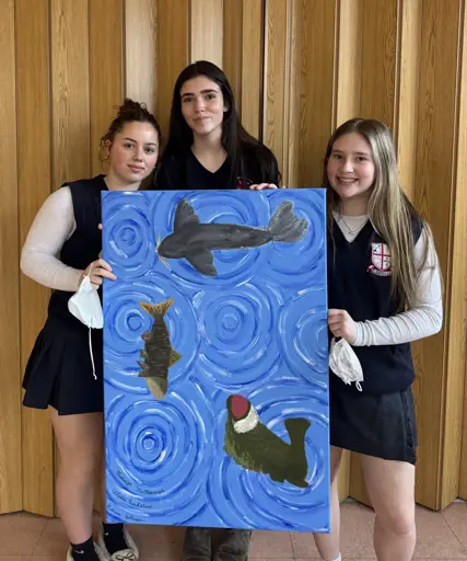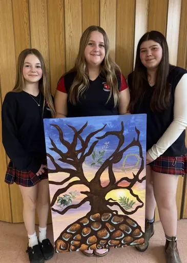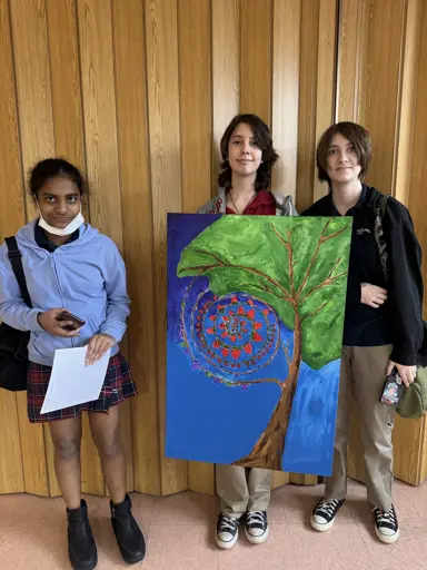 The students proudly presented beautiful artwork to adorn the halls of the LTC, each piece inspired by the Thanksgiving Address and brought to life through the students’ own understanding, storytelling, and artistic interpretations. Along with their artwork, students shared the story behind their paintings and what each piece represents, making the experience both engaging and heartfelt.