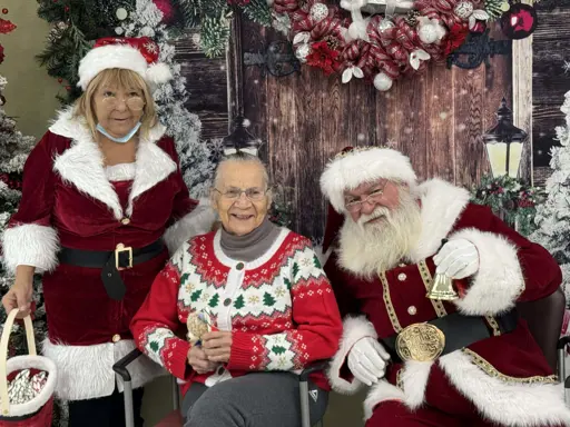 This cherished tradition was made even more special by Richard and Joann McFee, who join our holiday festivities each year, playing Santa and Mrs. Claus in honour and loving memory of their mother, Alice Cryderman — a former staff member and later a resident at Tsiionkwanonhso:te. Their generosity and spirit continue to brighten our community season after season.