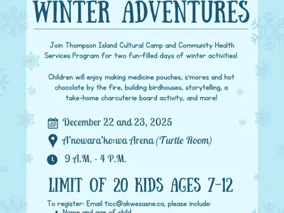 Space is limited to 20 kids ages 7-12. To register, please email ticc@akwesasne.ca and include the child’s name and age.