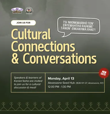 The MCA Traditional Medicines Program is hosting a community event for speakers and learners of Kanien’keha! Tsi niionkwarihò:ten’ entewahthá:rahkwe’ tánon’ enkakhwà:rake’ — We are going to talk about our culture and there will be food.