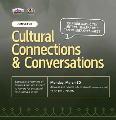 The MCA Traditional Medicines Program is hosting a community event for speakers and learners of Kanien’keha! Tsi niionkwarihò:ten’ entewahthá:rahkwe’ tánon’ enkakhwà:rake’ — We are going to talk about our culture and there will be food.