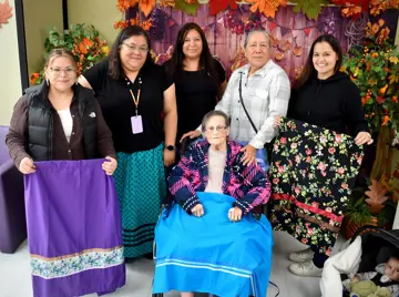 The totas at Tsiionkwanonhso:te recently attended the first traditional ceremony held at the Long-Term Care (LTC) facility, and they attended with flair, thanks to the generous donation of ribbon skirts, vests, dresses, and shawls. The call out went out to the Akwesasne community for donations and they did not disappoint!
