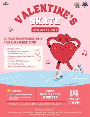 Celebrate Heart Health Month with a fun, family-friendly skate! Bring the whole family out for an evening of movement, learning, and community connection — all focused on keeping our hearts healthy.