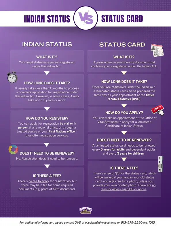OVS issues Certificates of Indian Status (laminated cards) and provides assistance with Secure Certificate of Indian Status (SCIS) applications.