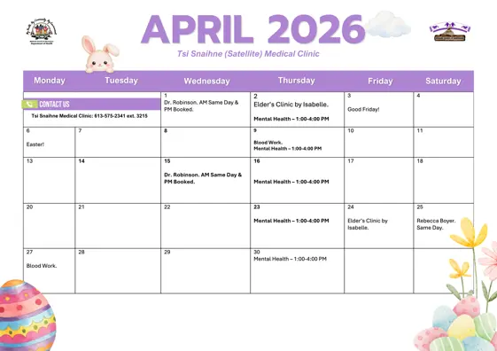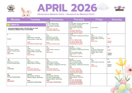 Check out the monthly medical clinic calendars below to see upcoming appointment availability and schedules.